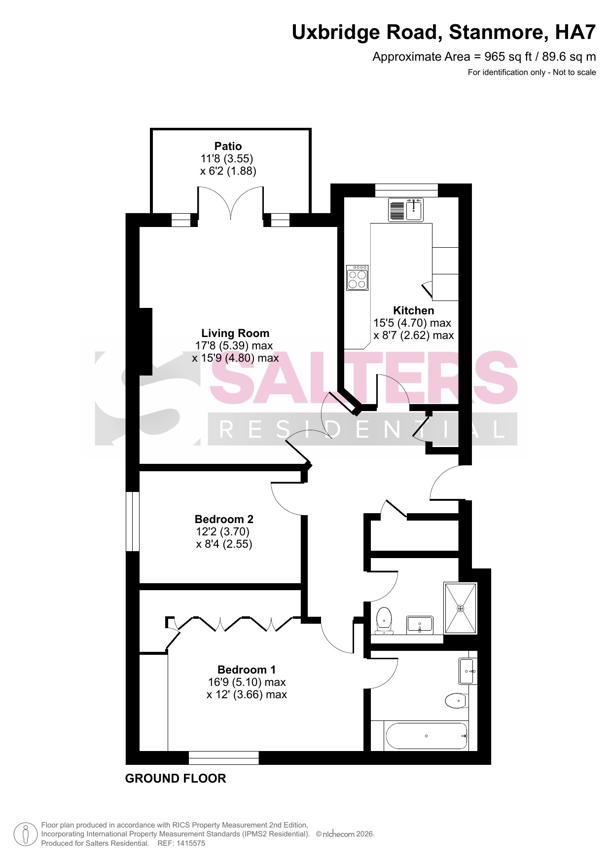 On entering, there is a good size hallway with access to all rooms. The reception room is an impressive 17ft 8' x 15ft 9' and has French doors that lead out to a private patio area and the 15ft 5' kitchen is fully equipped with integrated appliances and marble worktop surfaces. The large master bedroom features fitted wardrobes and an en-suite bathroom and there is also a second double bedroom and family shower room/w.c.